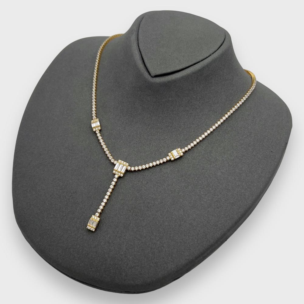 عقد تنس باقيت بعيار 18 هو قطعة مميزة تتميز بأناقتها وفخامتها. مصنوعة من الذهب عيار 18 ، هذا العقد مثالي للنساء اللواتي يبحثن عن قطعة مميزة وعصرية. يمكن ارتداء هذا العقد في المناسبات الرسمية أو اليومية، مما يضيف لمسة من الأناقة والجمال لإطلالتك.