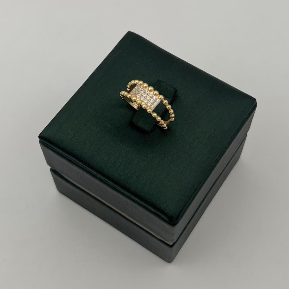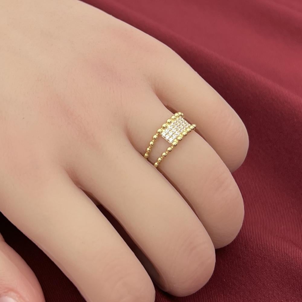 من مميزات هذا الخاتم هو المزج المثالي بين الحرفية الراقية والتصميم العصري. يتميز بخفة وزنه ونعومة ملمسه، مما يجعله مريحاً عند الارتداء لفترات طويلة. كما أن توزيع الألماس بدقة في تصميم المكرو يعزز من تألقه تحت الضوء، ليضفي لمسة فاخرة على أي إطلالة. هذا الخاتم مثالي للنساء اللواتي يبحثن عن الأناقة المتفردة في القطع الثمينة.