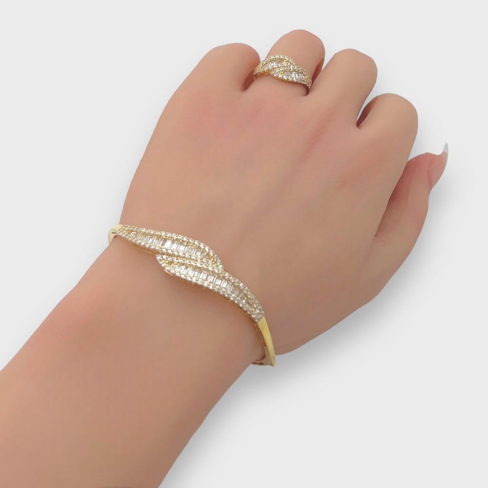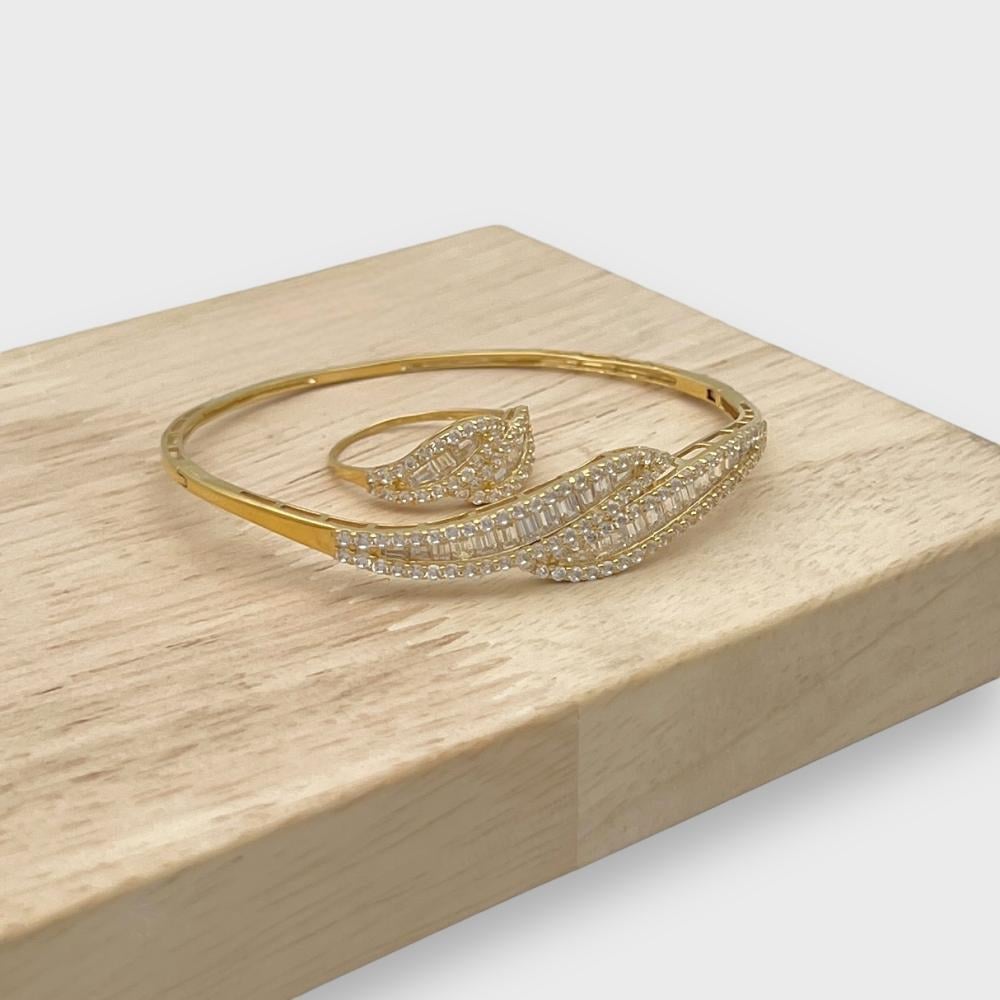 تتميز سوارة تصميم الماس باقيت بجودتها العالية وتصميمها الراقي الذي يجعلها قطعة مميزة لكل امرأة تبحث عن التميز والأناقة. تم صنع هذه السوارة من عيار 18، مما يعطيها لمعاناً جذاباً وثباتاً يدوم طويلاً.